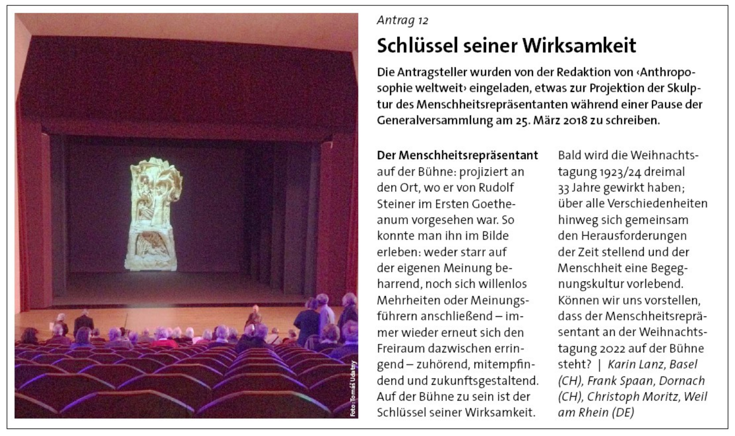 Ein Artikel in Anthroposophie Welt-Weit 2018 zum Thema Menschheitsrepräsentant auf die Bühne: